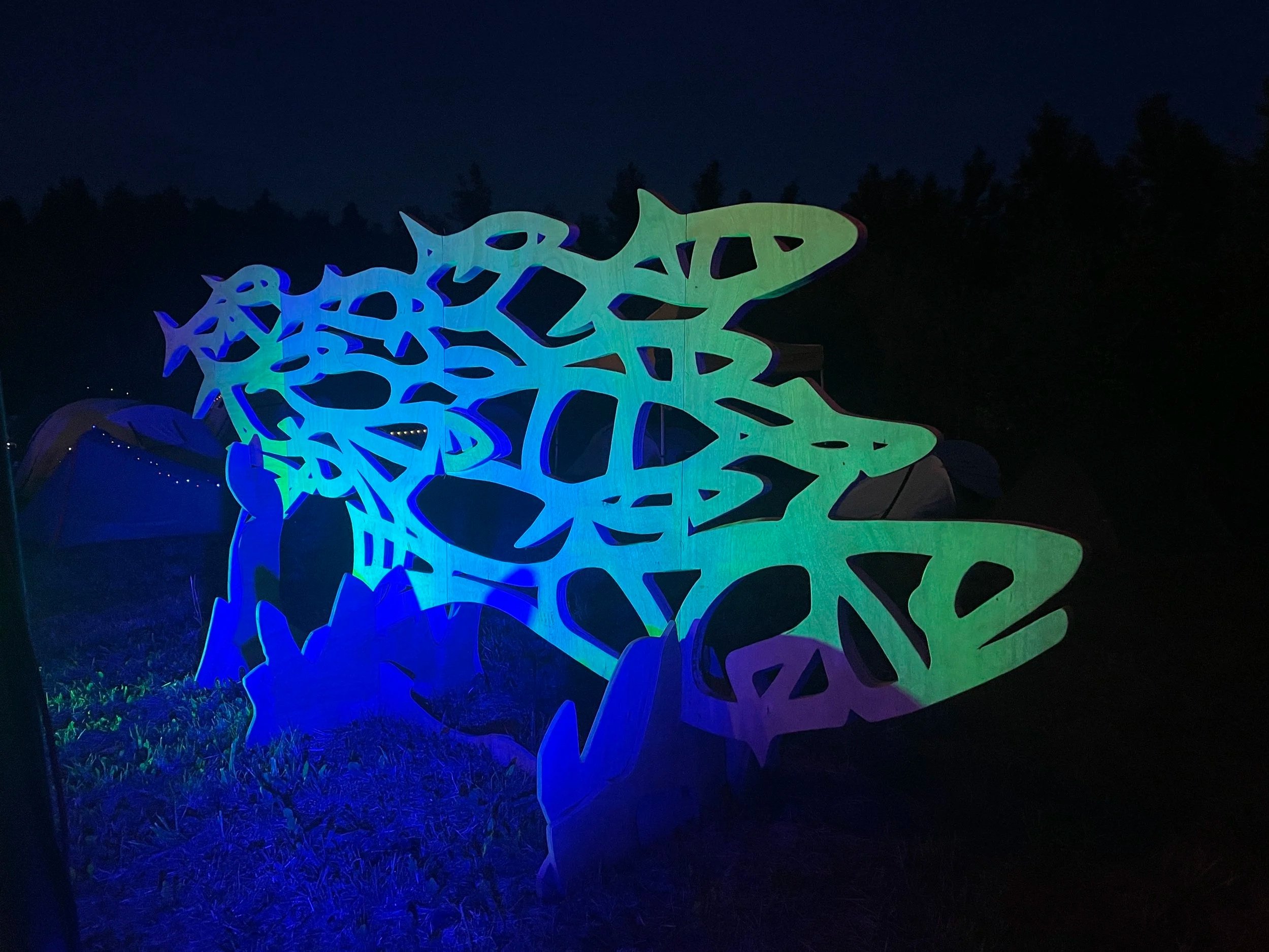 The illusionary fish forms in the composition play with our perception. Through the rounded, open, accessible forms and the play of light and shadow, the water world now becomes part of the surrounding landscape.
